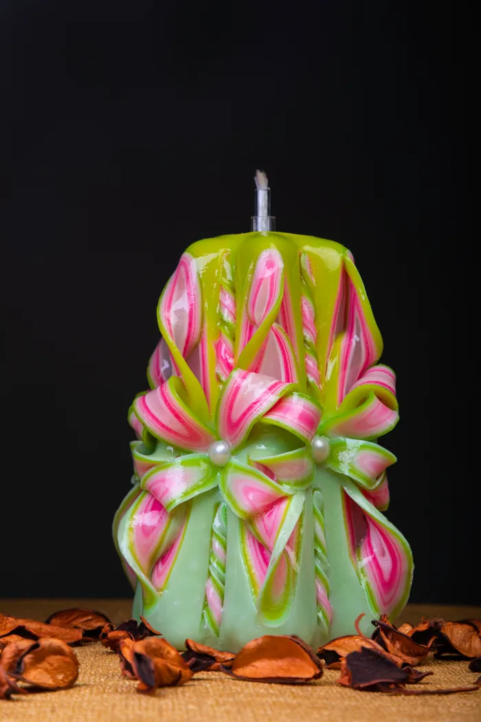 Our hand carved candles are more than just candlesโthey are works of art. Each piece is carefully crafted by skilled artisans, transforming layers of colorful wax into stunning Curls and swirls and decorative designs. With intricate carvings and vibrant patterns, every candle is unique and made with patience, precision, and passion. Perfect for home dรฉcor, gifts, and special occasions, our candles bring warmth, beauty, and creativity into every space.