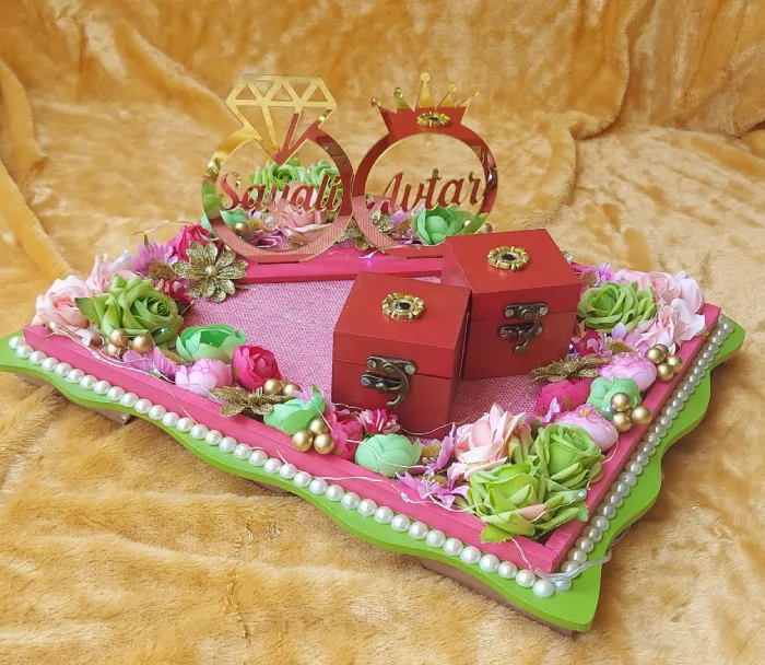 Celebrate the beginning of a beautiful journey with our Engagement Ring Platter, thoughtfully designed to present your rings in the most memorable way. Crafted with attention to detail, this platter adds elegance and charm to your engagement ceremony. Perfect for showcasing rings during ring exchange, it becomes a stunning centerpiece and a cherished keepsake from your special day.