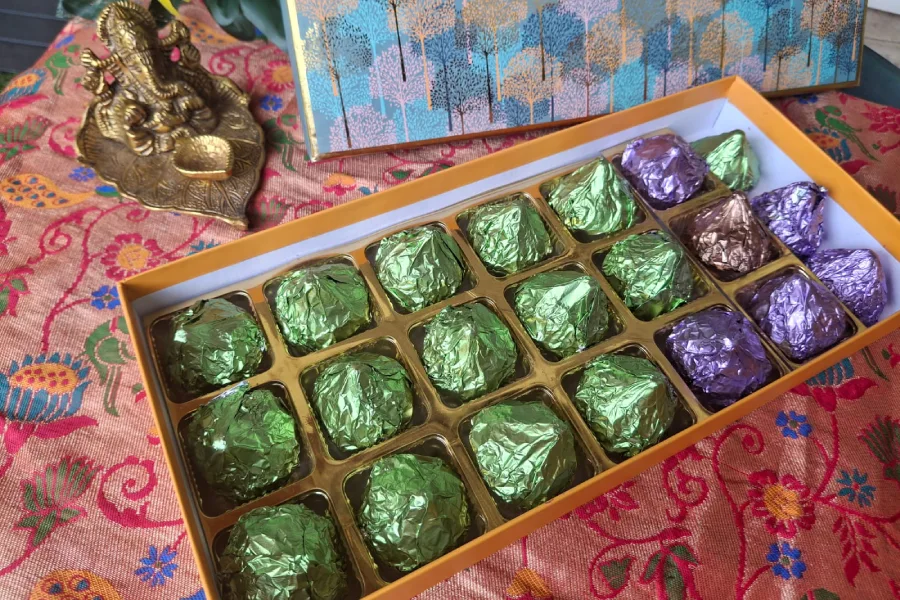 Assorted Chocolate Modak Box โ A premium selection of chocolate-filled modaks that beautifully blend tradition with indulgence