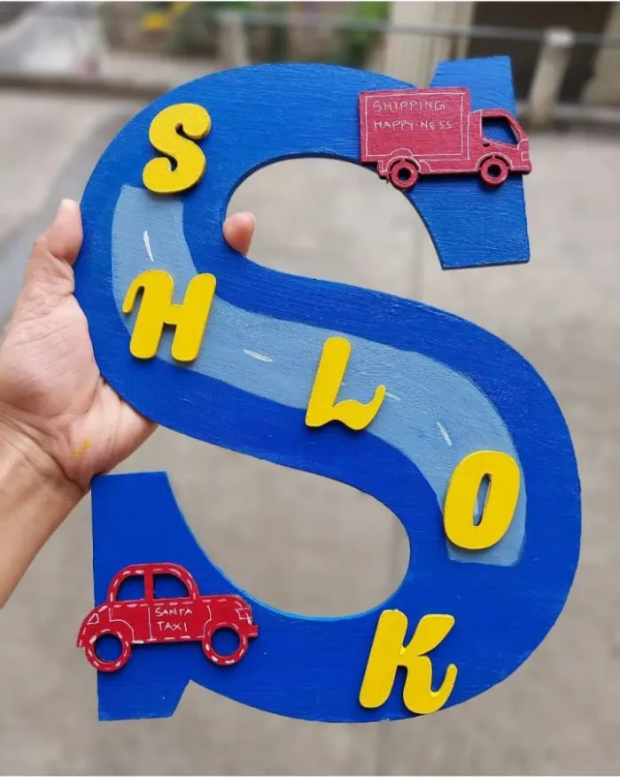 A kids initial nameplate is a decorative sign that shows the first letter (initial) of a childโs name, often with the full name written below or beside it. It is usually placed on the kidโs room door, nursery wall, or study area.